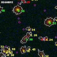 Black segments are analyzed here. Roll mouse over color images to view segments. Best viewed in a wide browser window (1200 pixels or more). Download SED & P(z) plots to view larger versions.