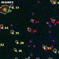 Black segments are analyzed here. Roll mouse over color images to view segments. Best viewed in a wide browser window (1200 pixels or more). Download SED & P(z) plots to view larger versions.