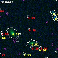 Black segments are analyzed here. Roll mouse over color images to view segments. Best viewed in a wide browser window (1200 pixels or more). Download SED & P(z) plots to view larger versions.