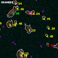 Black segments are analyzed here. Roll mouse over color images to view segments. Best viewed in a wide browser window (1200 pixels or more). Download SED & P(z) plots to view larger versions.