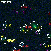Black segments are analyzed here. Roll mouse over color images to view segments. Best viewed in a wide browser window (1200 pixels or more). Download SED & P(z) plots to view larger versions.