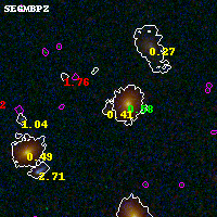 Black segments are analyzed here. Roll mouse over color images to view segments. Best viewed in a wide browser window (1200 pixels or more). Download SED & P(z) plots to view larger versions.