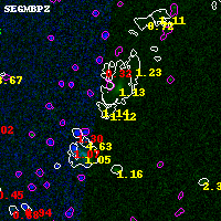 Black segments are analyzed here. Roll mouse over color images to view segments. Best viewed in a wide browser window (1200 pixels or more). Download SED & P(z) plots to view larger versions.
