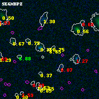 Black segments are analyzed here. Roll mouse over color images to view segments. Best viewed in a wide browser window (1200 pixels or more). Download SED & P(z) plots to view larger versions.