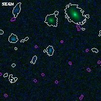 Black segments are analyzed here. Roll mouse over color images to view segments. Best viewed in a wide browser window (1200 pixels or more). Download SED & P(z) plots to view larger versions.