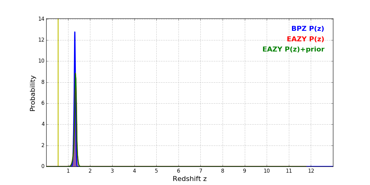 In P(z) plots: Yellow lines mark the cluster redshift z = 0.546,