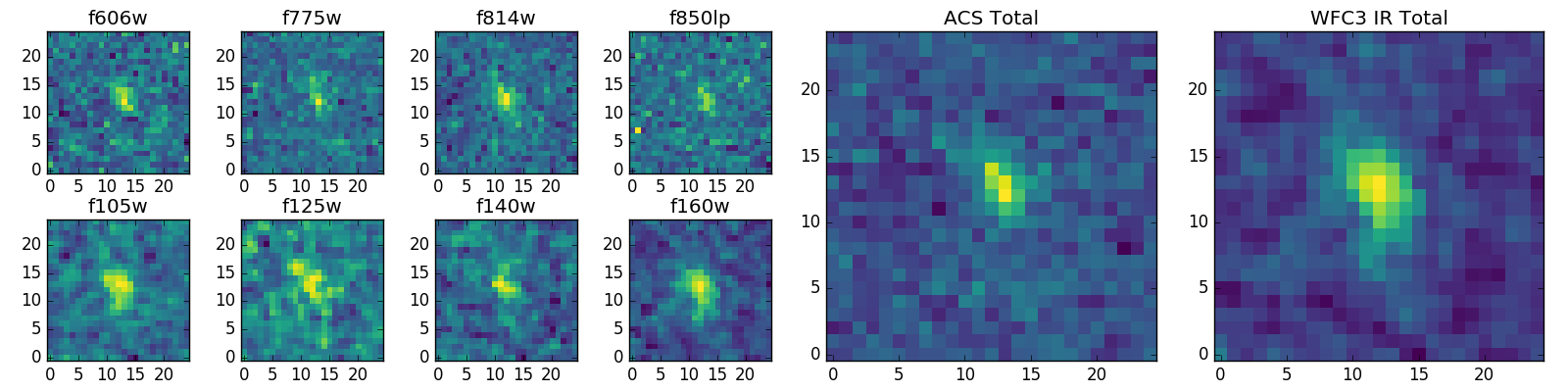 Black segments are analyzed here. Roll mouse over color images to view segments. Best viewed in a wide browser window (1200 pixels or more). Download SED & P(z) plots to view larger versions.