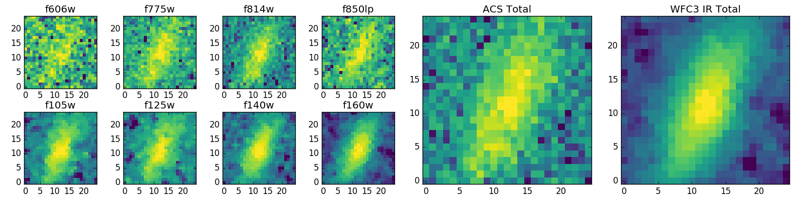 Black segments are analyzed here. Roll mouse over color images to view segments. Best viewed in a wide browser window (1200 pixels or more). Download SED & P(z) plots to view larger versions.