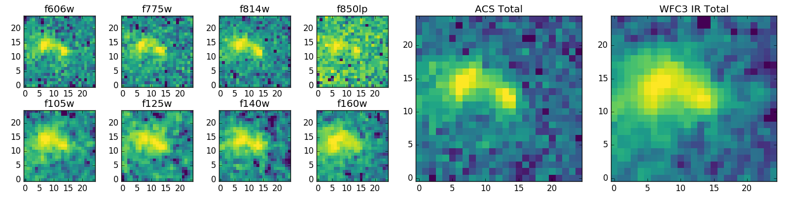 Black segments are analyzed here. Roll mouse over color images to view segments. Best viewed in a wide browser window (1200 pixels or more). Download SED & P(z) plots to view larger versions.