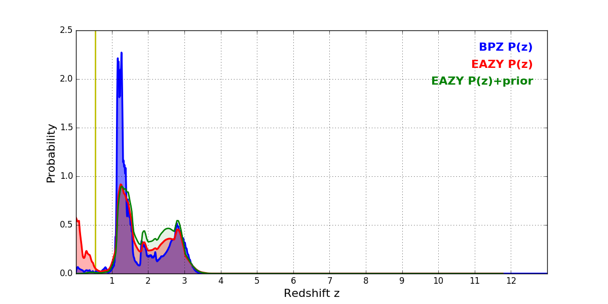 In P(z) plots: Yellow lines mark the cluster redshift z = 0.546,
