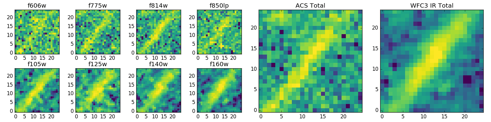 Black segments are analyzed here. Roll mouse over color images to view segments. Best viewed in a wide browser window (1200 pixels or more). Download SED & P(z) plots to view larger versions.