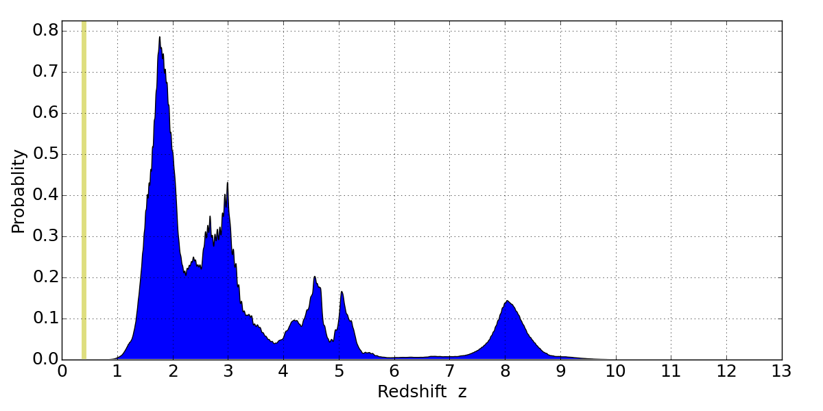 Best viewed in a wide browser window (1200 pixels or more). Download SED & P(z) plots to view larger versions.