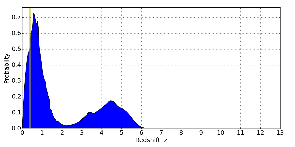 Best viewed in a wide browser window (1200 pixels or more). Download SED & P(z) plots to view larger versions.