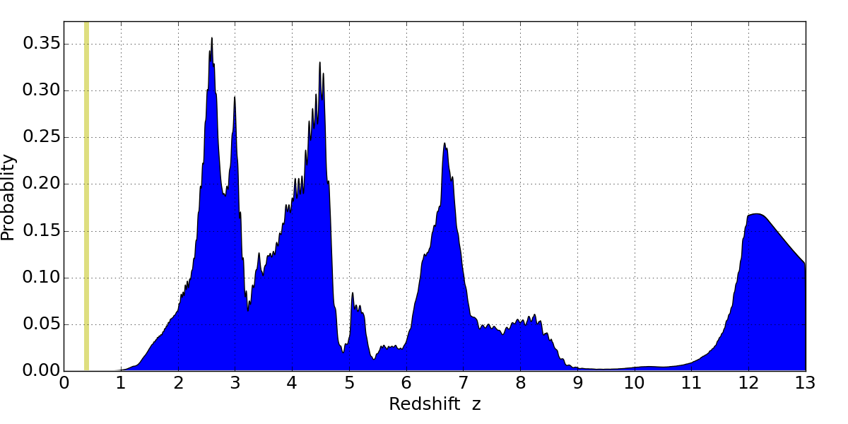 Best viewed in a wide browser window (1200 pixels or more). Download SED & P(z) plots to view larger versions.