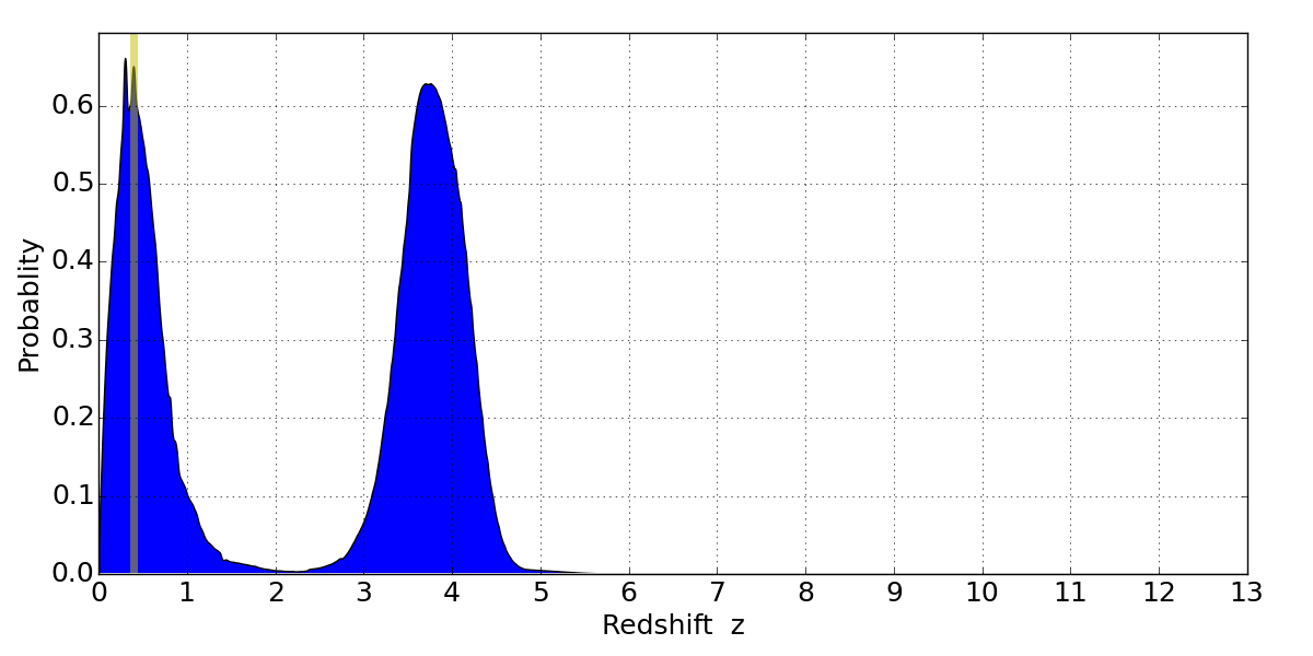 Best viewed in a wide browser window (1200 pixels or more). Download SED & P(z) plots to view larger versions.