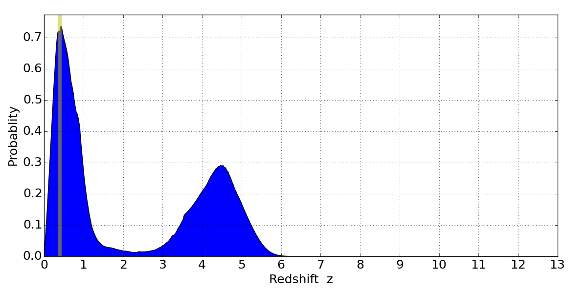 Best viewed in a wide browser window (1200 pixels or more). Download SED & P(z) plots to view larger versions.