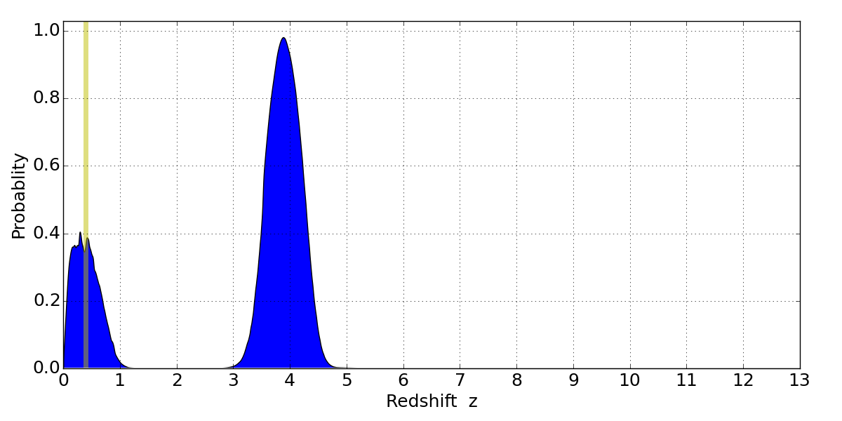 Best viewed in a wide browser window (1200 pixels or more). Download SED & P(z) plots to view larger versions.