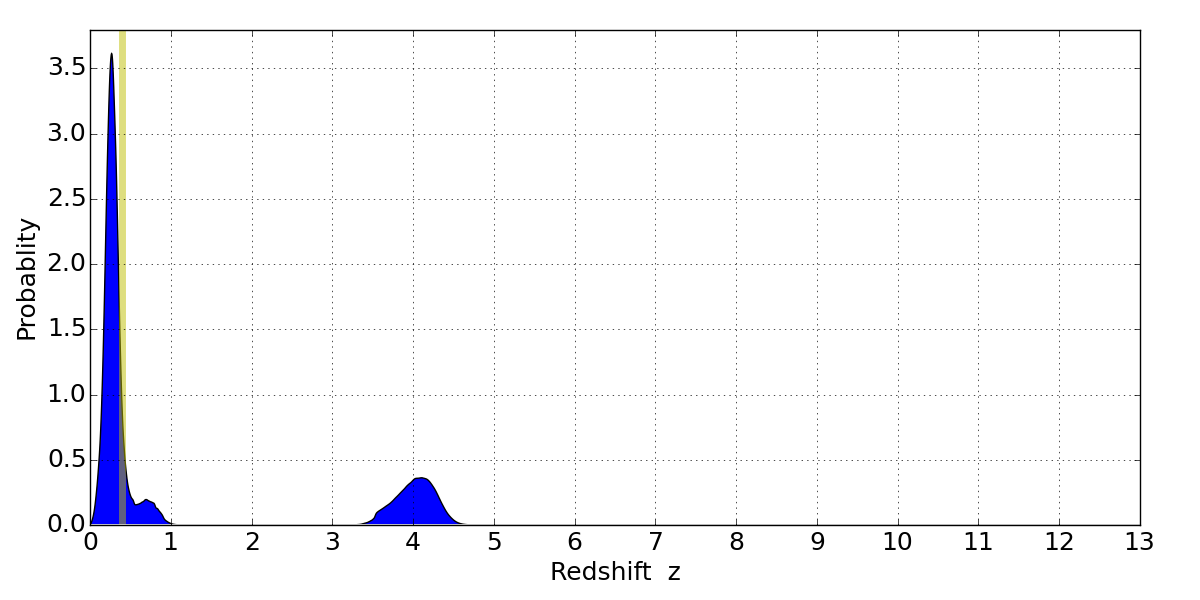 Best viewed in a wide browser window (1200 pixels or more). Download SED & P(z) plots to view larger versions.
