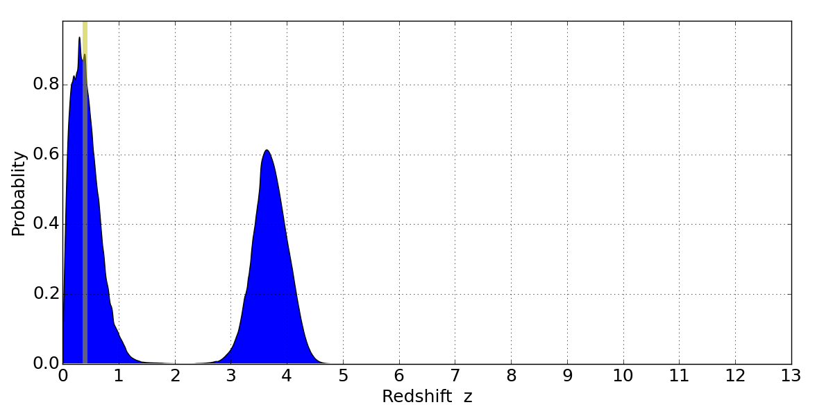 Best viewed in a wide browser window (1200 pixels or more). Download SED & P(z) plots to view larger versions.