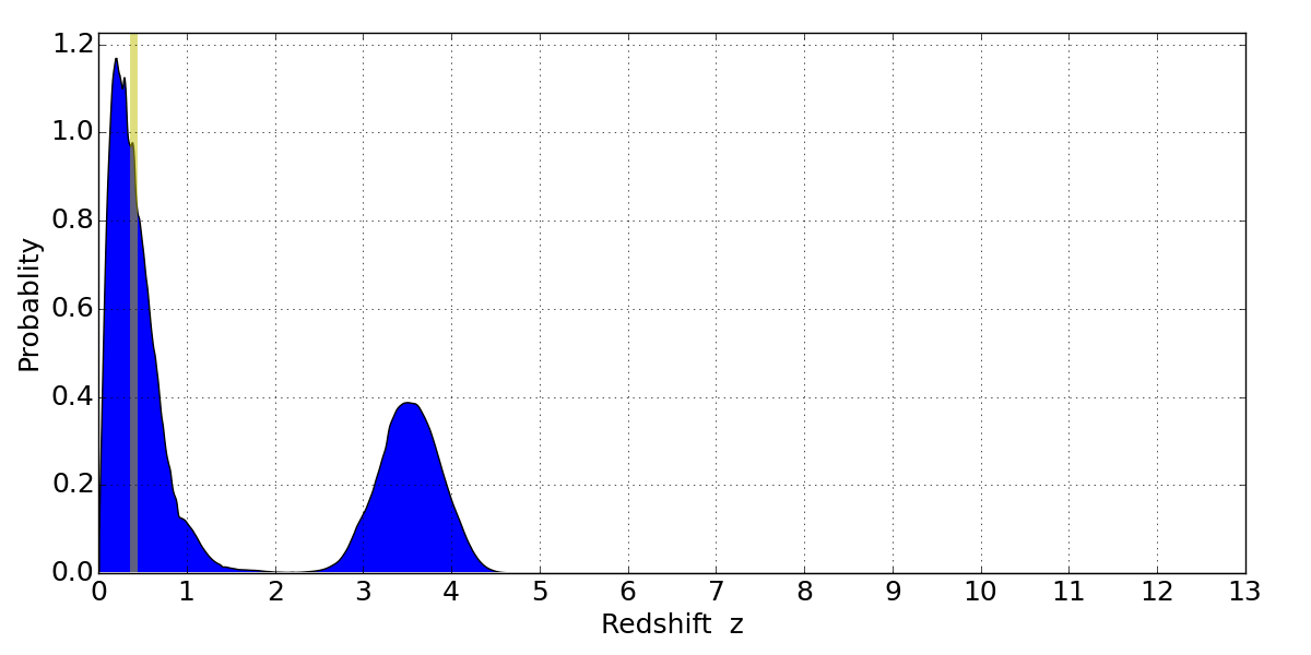 Best viewed in a wide browser window (1200 pixels or more). Download SED & P(z) plots to view larger versions.