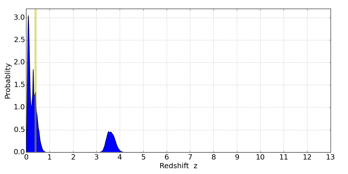 Best viewed in a wide browser window (1200 pixels or more). Download SED & P(z) plots to view larger versions.