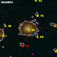Object #1015 x,y = (3080, 3607) RA, Dec = (00:32:08.808, 18:08:59.28) = (8.03670, 18.14980) BPZ = 0.430 [0.208--0.512] type = 6.40 (Sbc_B10 - Scd_B10) chisq2 = 0.00 ODDS = 0.63 z_cluster = 0.396