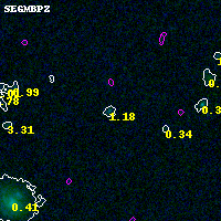 Object #1025 x,y = (1457, 3629) RA, Dec = (00:32:15.648, 18:09:00.72) = (8.06520, 18.15020) BPZ = 1.176 [0.244--2.137] type = 9.00 (SB2_B10) chisq2 = 0.01 ODDS = 0.17 z_cluster = 0.396