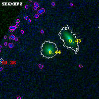 Object #1041 x,y = (1214, 3606) RA, Dec = (00:32:16.680, 18:08:59.28) = (8.06950, 18.14980) BPZ = 0.444 [0.347--0.492] type = 5.10 (ES0_B10 - Sbc_B10) chisq2 = 0.00 ODDS = 0.84 z_cluster = 0.396