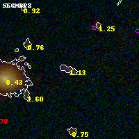 Object #1044 x,y = (3171, 3621) RA, Dec = (00:32:08.424, 18:09:0) = (8.03510, 18.15000) BPZ = 1.133 [0.970--1.328] type = 9.70 (SB3_B10 - SB2_B10) chisq2 = 0.71 ODDS = 0.72 z_cluster = 0.396
