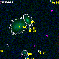 Object #1357 x,y = (1252, 3416) RA, Dec = (00:32:16.512, 18:08:47.76) = (8.06880, 18.14660) BPZ = 0.278 [0.067--2.686] type = 10.20 (SB3_B10 - SB11_A_0_l) chisq2 = 0.01 ODDS = 0.15 z_cluster = 0.396