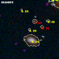 Object #1378 x,y = (1414, 3349) RA, Dec = (00:32:15.840, 18:08:43.80) = (8.06600, 18.14550) BPZ = 0.987 [0.674--1.191] type = 9.00 (SB2_B10) chisq2 = 0.47 ODDS = 0.53 z_cluster = 0.396