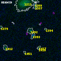 Object #1392 x,y = (1237, 3338) RA, Dec = (00:32:16.584, 18:08:43.08) = (8.06910, 18.14530) BPZ = 0.605 [0.434--0.815] type = 7.90 (SB1_B10 - Scd_B10) chisq2 = 0.00 ODDS = 0.58 z_cluster = 0.396