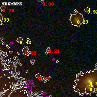 Object #1461 x,y = (2524, 3274) RA, Dec = (00:32:11.160, 18:08:39.12) = (8.04650, 18.14420) BPZ = 2.211 [0.104--2.691] type = 11.00 (SB11_A_0_l) chisq2 = 2.98 ODDS = 0.31 z_cluster = 0.396