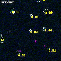 Object #1550 x,y = (1215, 3218) RA, Dec = (00:32:16.656, 18:08:35.88) = (8.06940, 18.14330) BPZ = 0.916 [0.754--1.521] type = 8.90 (SB2_B10 - SB1_B10) chisq2 = 0.94 ODDS = 0.42 z_cluster = 0.396