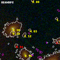 Object #1570 x,y = (2666, 3203) RA, Dec = (00:32:10.560, 18:08:35.16) = (8.04400, 18.14310) BPZ = 4.026 [0.272--4.370] type = 8.20 (SB1_B10 - SB2_B10) chisq2 = 0.66 ODDS = 0.43 z_cluster = 0.396