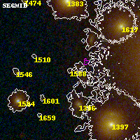 Object #1588 x,y = (2220, 3220) RA, Dec = (00:32:12.432, 18:08:35.88) = (8.05180, 18.14330) BPZ = 0.687 [0.109--3.738] type = 9.90 (SB3_B10 - SB2_B10) chisq2 = 0.40 ODDS = 0.15 z_cluster = 0.396