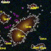 Object #1696 x,y = (2734, 3091) RA, Dec = (00:32:10.272, 18:08:28.32) = (8.04280, 18.14120) BPZ = 0.622 [0.558--0.702] type = 6.30 (Sbc_B10 - Scd_B10) chisq2 = 0.03 ODDS = 0.92 z_cluster = 0.396