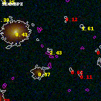 Object #1704 x,y = (3219, 3121) RA, Dec = (00:32:08.232, 18:08:30.12) = (8.03430, 18.14170) BPZ = 2.432 [0.106--3.161] type = 11.00 (SB11_A_0_l) chisq2 = 0.96 ODDS = 0.19 z_cluster = 0.396