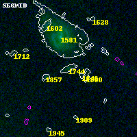 Object #1744 x,y = (4099, 3097) RA, Dec = (00:32:04.536, 18:08:28.68) = (8.01890, 18.14130) BPZ = 0.430 [0.131--3.099] type = 7.80 (SB1_B10 - Scd_B10) chisq2 = 0.00 ODDS = 0.33 z_cluster = 0.396