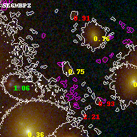 Object #1785 x,y = (2612, 3073) RA, Dec = (00:32:10.800, 18:08:27.24) = (8.04500, 18.14090) BPZ = 0.750 [0.487--0.946] type = 9.00 (SB2_B10) chisq2 = 0.99 ODDS = 0.38 z_cluster = 0.396