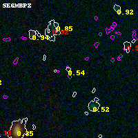 Object #1888 x,y = (3513, 3032) RA, Dec = (00:32:06.984, 18:08:24.72) = (8.02910, 18.14020) BPZ = 0.535 [0.197--3.728] type = 8.10 (SB1_B10 - SB2_B10) chisq2 = 0.00 ODDS = 0.11 z_cluster = 0.396