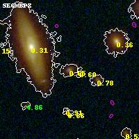 Object #1949 x,y = (1941, 3001) RA, Dec = (00:32:13.608, 18:08:22.92) = (8.05670, 18.13970) BPZ = 0.649 [0.458--0.757] type = 7.80 (SB1_B10 - Scd_B10) chisq2 = 0.44 ODDS = 0.68 z_cluster = 0.396