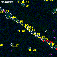 Object #2054 x,y = (4413, 2938) RA, Dec = (00:32:03.216, 18:08:18.96) = (8.01340, 18.13860) BPZ = 1.577 [0.202--2.947] type = 9.50 (SB3_B10 - SB2_B10) chisq2 = 0.00 ODDS = 0.11 z_cluster = 0.396