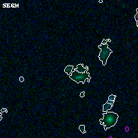 Object #2186 x,y = (1340, 2864) RA, Dec = (00:32:16.152, 18:08:14.64) = (8.06730, 18.13740) BPZ = 0.396 [0.100--3.162] type = 9.20 (SB2_B10 - SB3_B10) chisq2 = 0.00 ODDS = 0.17 z_cluster = 0.396