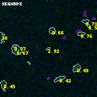 Object #222 x,y = (2179, 4589) RA, Dec = (00:32:12.600, 18:09:58.32) = (8.05250, 18.16620) BPZ = 2.915 [0.186--3.369] type = 10.30 (SB3_B10 - SB11_A_0_l) chisq2 = 0.87 ODDS = 0.18 z_cluster = 0.396