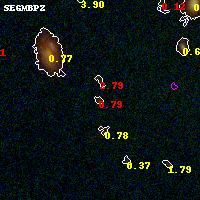 Object #2228 x,y = (3344, 2847) RA, Dec = (00:32:07.704, 18:08:13.56) = (8.03210, 18.13710) BPZ = 0.791 [0.435--4.755] type = 8.20 (SB1_B10 - SB2_B10) chisq2 = 1.04 ODDS = 0.23 z_cluster = 0.396