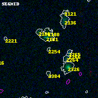 Object #2254 x,y = (1360, 2828) RA, Dec = (00:32:16.056, 18:08:12.48) = (8.06690, 18.13680) BPZ = 0.375 [0.154--3.359] type = 9.80 (SB3_B10 - SB2_B10) chisq2 = 0.06 ODDS = 0.05 z_cluster = 0.396