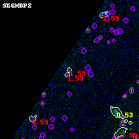 Object #2340 x,y = (581, 2796) RA, Dec = (00:32:19.344, 18:08:10.68) = (8.08060, 18.13630) BPZ = 1.593 [1.349--2.216] type = 11.00 (SB11_A_0_l) chisq2 = 5.75 ODDS = 0.35 z_cluster = 0.396