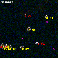Object #2388 x,y = (2234, 2776) RA, Dec = (00:32:12.384, 18:08:09.24) = (8.05160, 18.13590) BPZ = 0.556 [0.103--2.637] type = 9.20 (SB2_B10 - SB3_B10) chisq2 = 0.18 ODDS = 0.23 z_cluster = 0.396