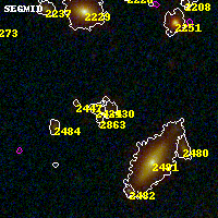 Object #2430 x,y = (2402, 2744) RA, Dec = (00:32:11.664, 18:08:07.44) = (8.04860, 18.13540) BPZ = 0.617 [0.208--1.018] type = 8.50 (SB2_B10 - SB1_B10) chisq2 = 0.78 ODDS = 0.32 z_cluster = 0.396